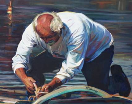 paintings of the fishermen, dockworkers, and other workers of the seas of Acadia. |